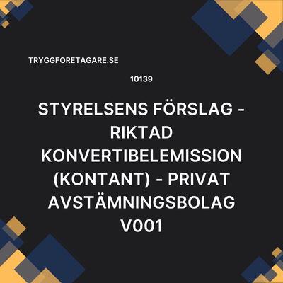 Styrelsens förslag Riktad konvertibelemission (kontant) Privat avstämningsbolag