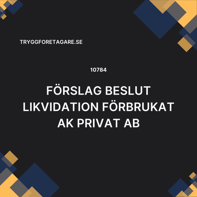 Förslag beslut likvidation förbrukat AK privat AB